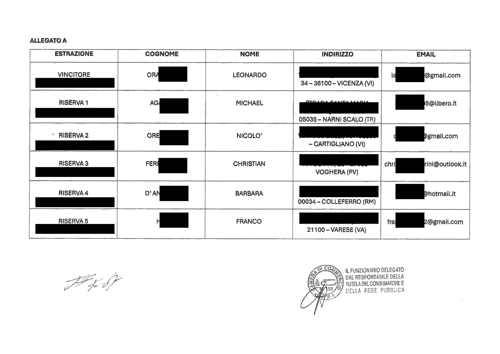 Event regulated under Presidential Decree 430/2001 READ THE FULL REGULATIONS HERE CONTEST ACTIVE UNTIL APRIL 22, 2024.