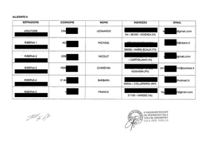 numero sarà inserito all’interno di un tabulato che sarà successivamente consegnato